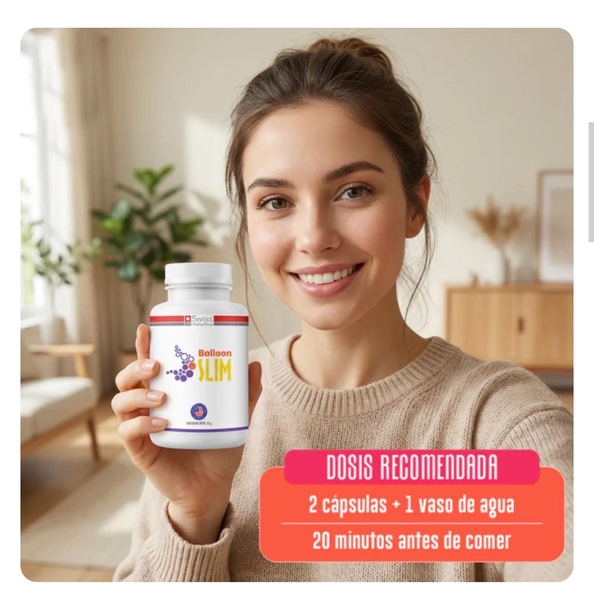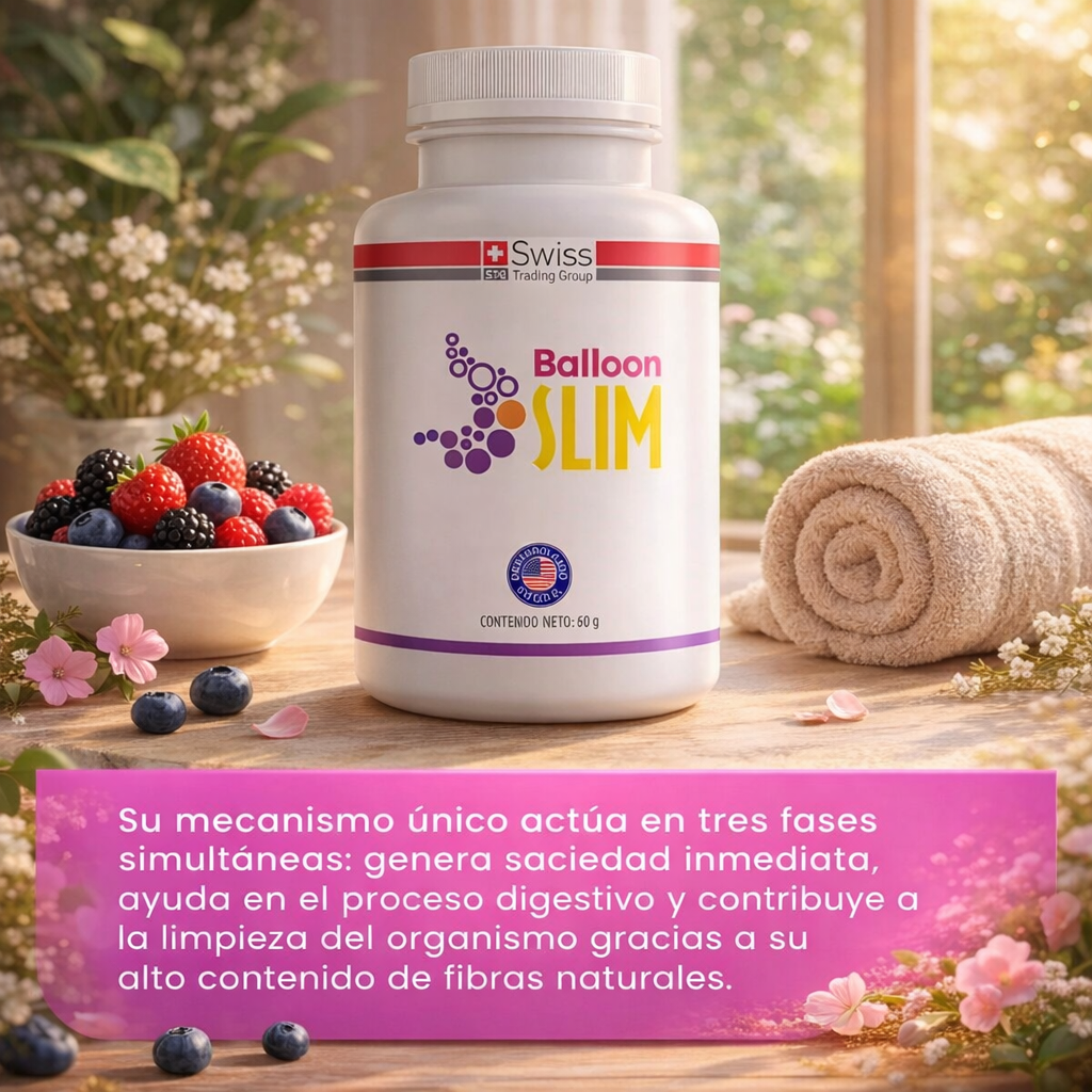 Balloon Slim: El Sistema Revolucionario de Balón Gástrico en Cápsulas para adelgazar Experimenta la innovación en control de peso con Balloon Slim, el suplemento que simula el efecto de un balón gástrico sin procedimientos invasivos. Desarrollado con tecnología Hidro Slim de origen natural, genera una poderosa sensación de saciedad que te ayuda a reducir porciones de comida de manera efectiva y completamente segura. Olvídate de las dietas extremas y alcanza tu peso ideal sin pasar hambre. Características Destacadas Tecnología Hidro Slim: Su fórmula con fibras naturales se expande al contacto con los líquidos en tu estómago, creando un efecto de plenitud que controla el apetito y reduce la ansiedad por comer de forma constante y confiable. Origen natural y seguro: Elaborado con fibras de alta calidad en laboratorios internacionales certificados, garantizando un producto confiable que no presenta riesgos para tu salud ni efectos secundarios no deseados. Resultados comprobados sin esfuerzo: Sistema diseñado para facilitar la pérdida de peso acelerada sin cirugías, métodos invasivos o cambios drásticos en tu rutina, solo con la toma simple de cápsulas antes de las comidas.Efecto triple de acción: Su mecanismo único actúa en tres fases simultáneas: genera saciedad inmediata, ayuda en el proceso digestivo y contribuye a la limpieza del organismo gracias a su alto contenido de fibras naturales. Prevención del efecto rebote: Ayuda a mantener los resultados a largo plazo mediante un control natural del apetito, evitando la recuperación rápida de peso y permitiendo una transición hacia hábitos alimenticios más saludables. Especificaciones técnicas: Duración: 1 mes. Tipo de producto: Suplemento alimentario - Balón Gástrico en Cápsulas Presentación: Frasco con 120 cápsulas. Modo de uso: Consumir 2 cápsulas con un vaso de agua 20 minutos antes de las comidas principales. Sabor: Neutro/Sin sabor. Tecnología: Hidro Slim. Composición: Fibras de origen natural. Efecto principal: Generador de saciedad. Beneficio adicional: Contribuye a la limpieza del organismo. Características: Origen Natural. País de origen: Estados Unidos. SEREMI de Salud R.M. N° 201365816 del 20/03/2020. Transforma Tu Vida con Confianza. Decídete hoy por el método revolucionario que ha cambiado la vida de miles de personas y alcanza tu peso ideal de manera segura, sin cirugías y sin efecto rebote. Balloon Slim es tu aliado perfecto para lograr el cuerpo que siempre soñaste en tiempo récord y con resultados que perduran en el tiempo!